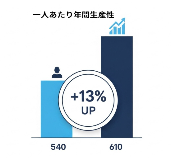 • 従業員 10名の企業:年間 +700万円 の生産性向上